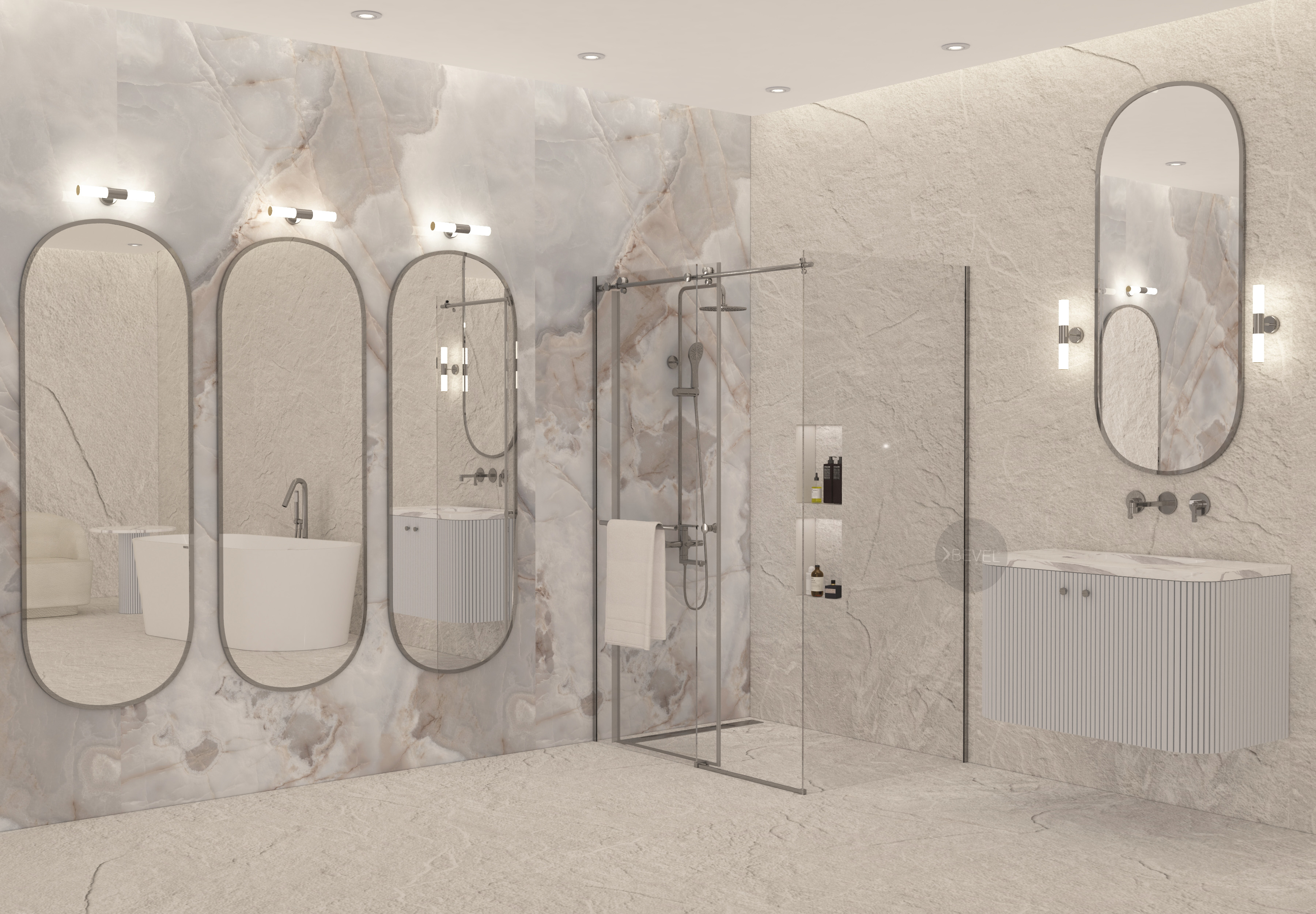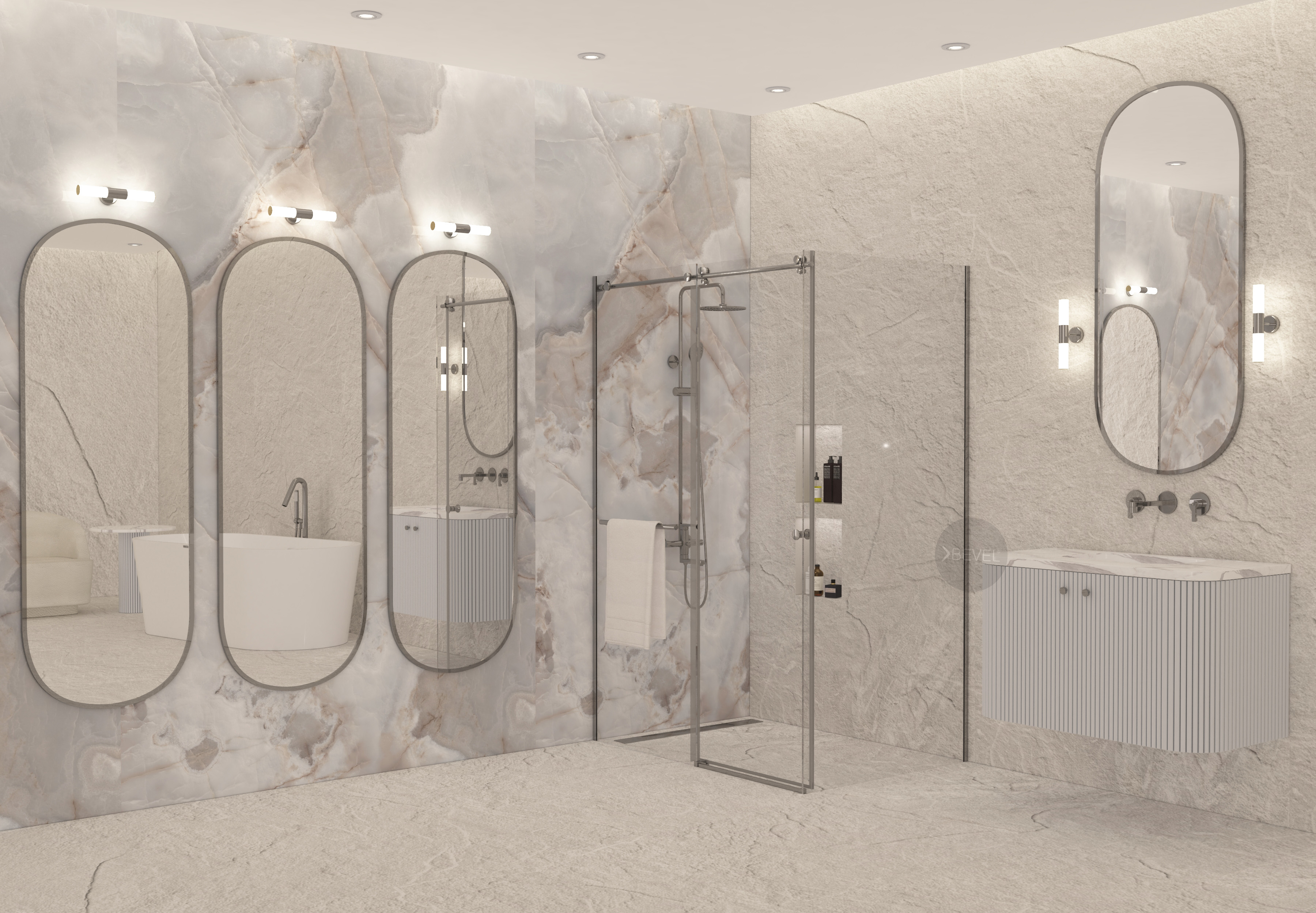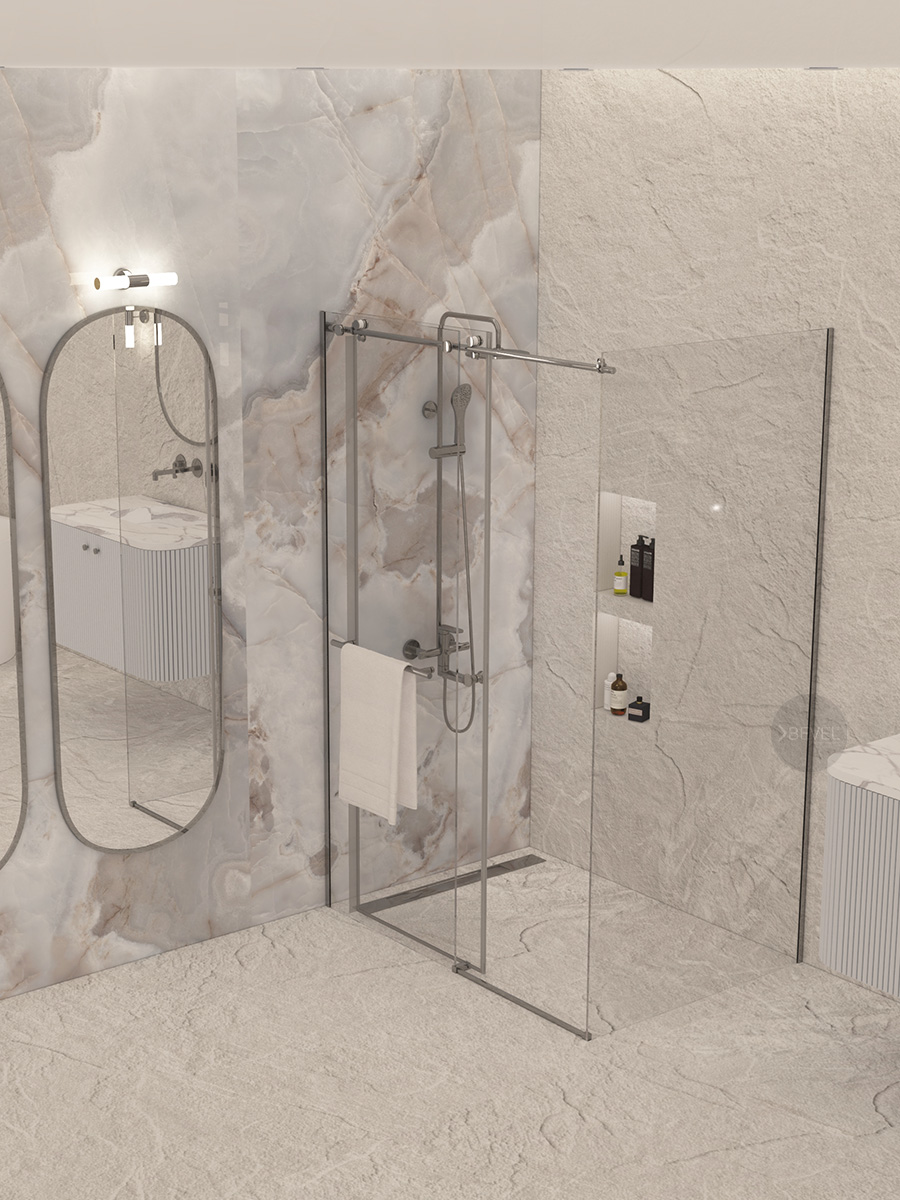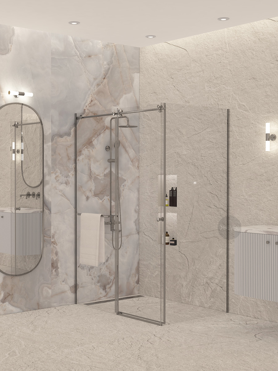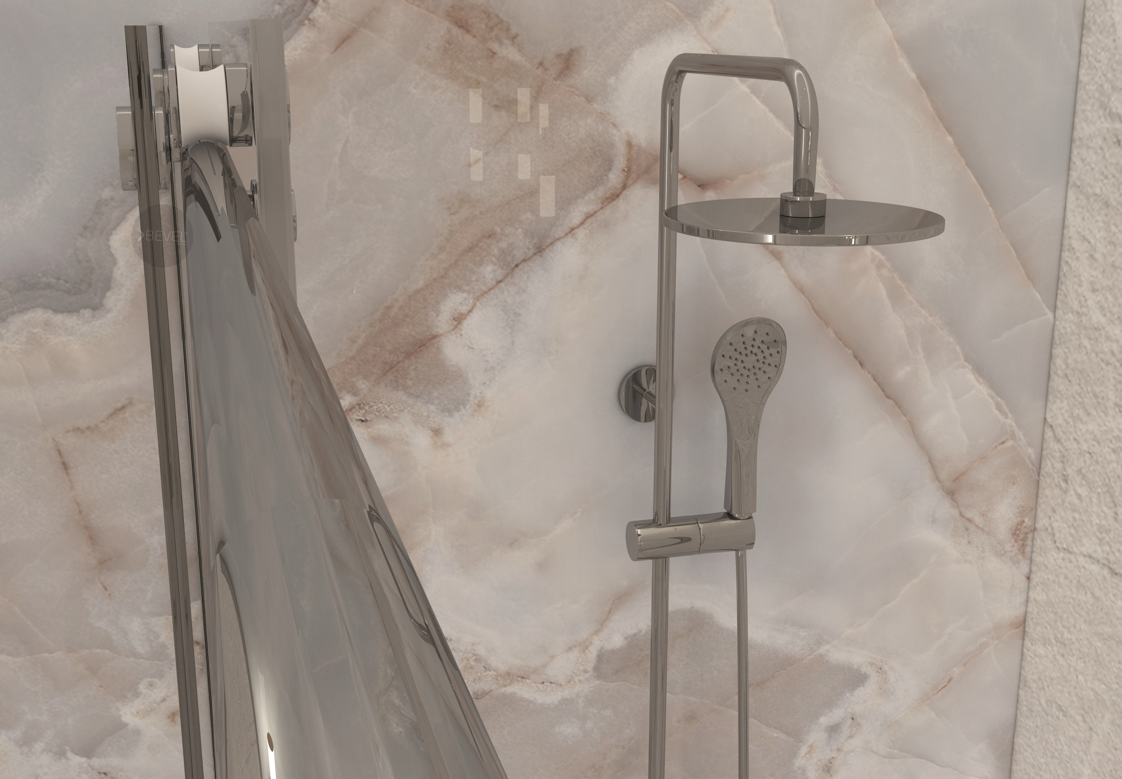 İki sabit ve bir kayar kapıdan oluşan yapısı sayesinde geniş alanlarda ferah, dengeli ve şık bir görünüm elde edilir. Dikdörtgen formun zamansız karakteri, NOVA’nın estetik diliyle birleşerek banyolar için vazgeçilmez bir çözüm sunar.