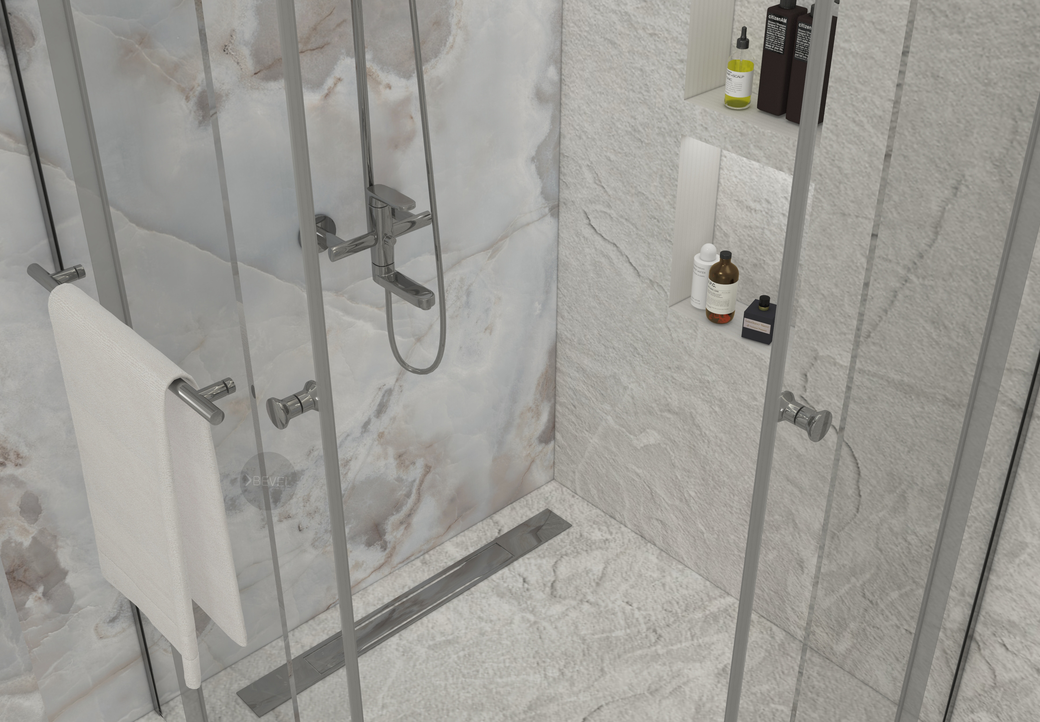EŞİKSİZ MONTAJ İMKANI Eşikli veya eşiksiz kabinlerde standart olarak duş kabini montajı için gerekli tüm aparatları ürüne eklenmektedir.