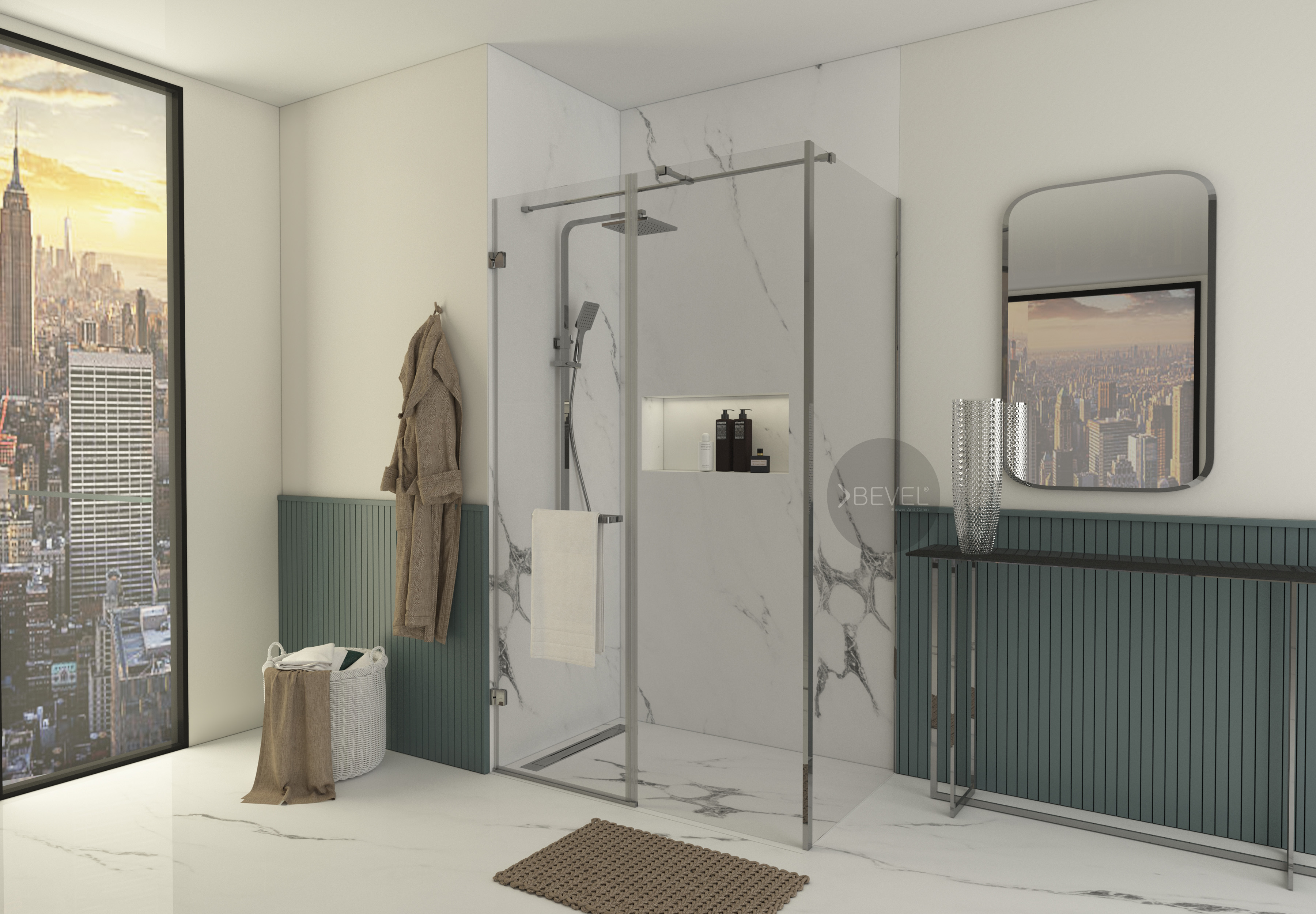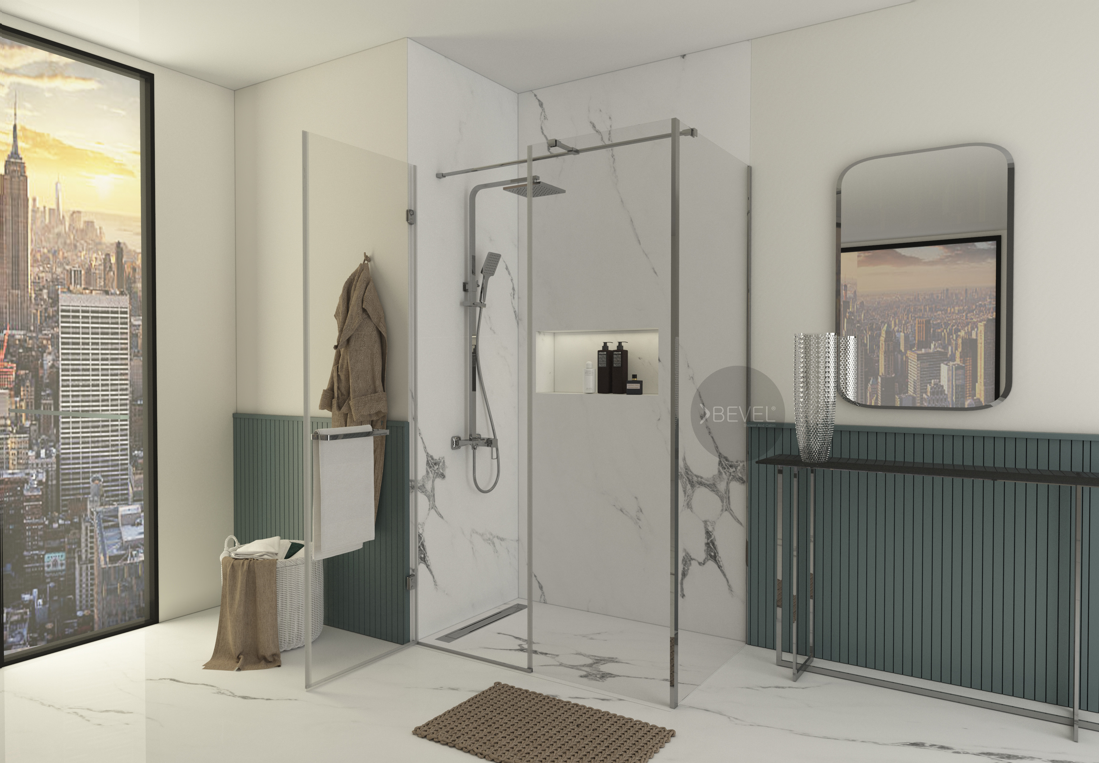 8 farklı renk seçeneği, mimari ve iç mekân tasarımlarıyla uyum sağlarken; entegre havlu askısı ve bornoz askısı, kullanım alanını daha işlevsel ve düzenli hâle getirir.