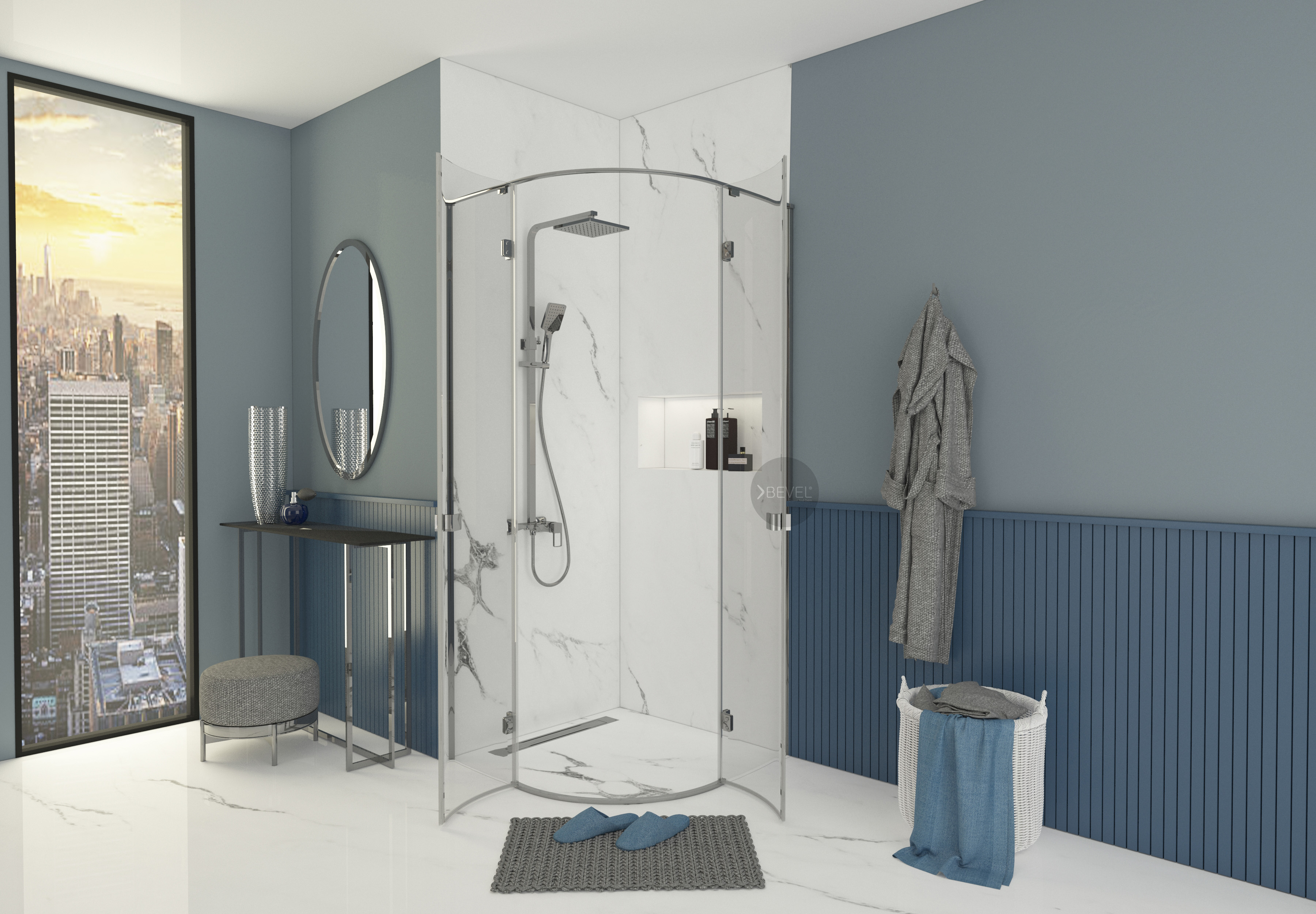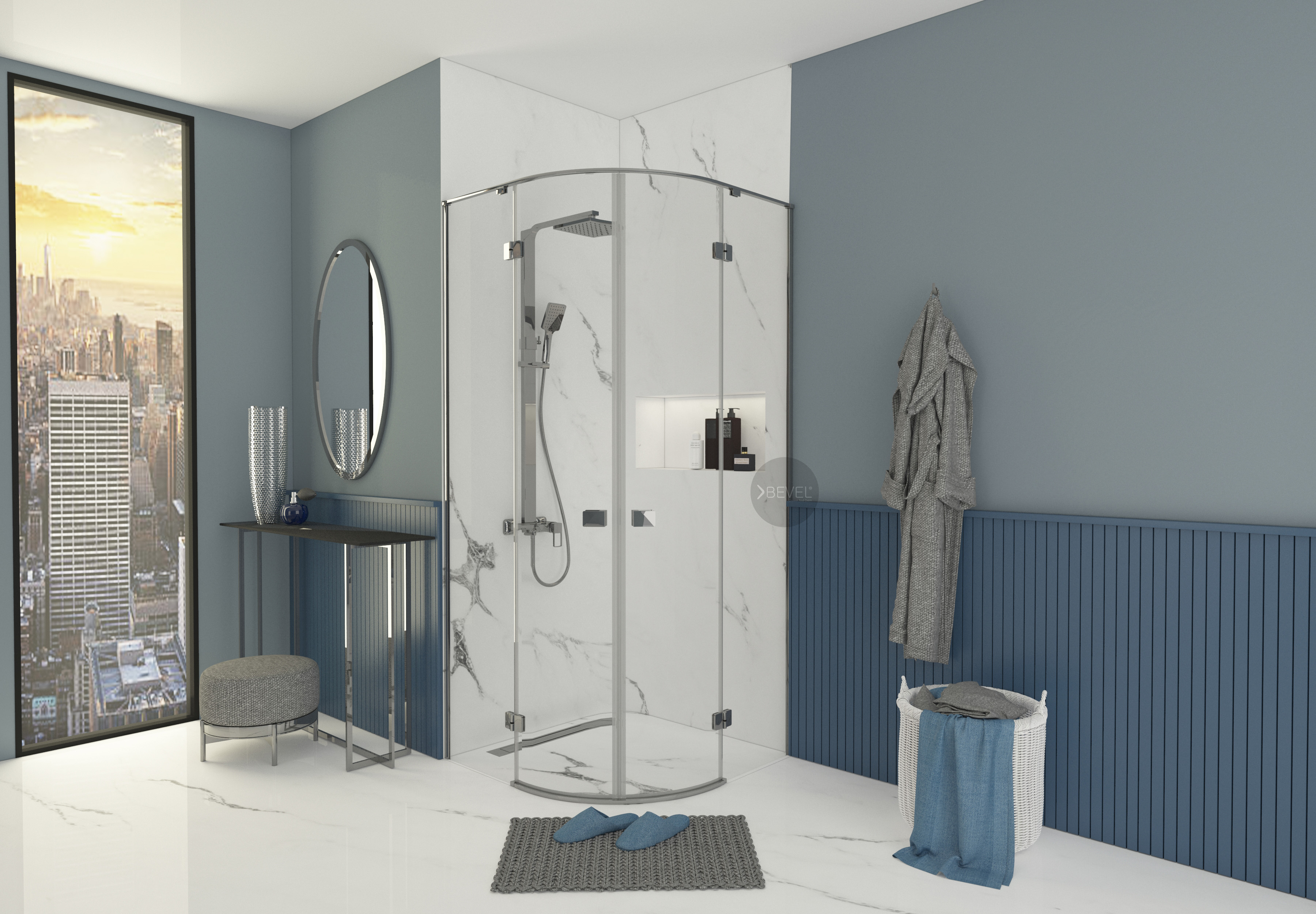 Oval formda tasarlanan bu duşakabin modeli, 6 mm temperli cam yapısı ve kompakt ölçülere uyum sağlayan mühendisliğiyle ofisler ve küçük engelli banyoları için özel olarak geliştirilmiştir. Köşesiz formu, erişimi kolaylaştırırken güvenli kullanım avantajı sunar.