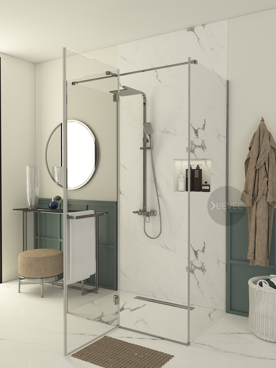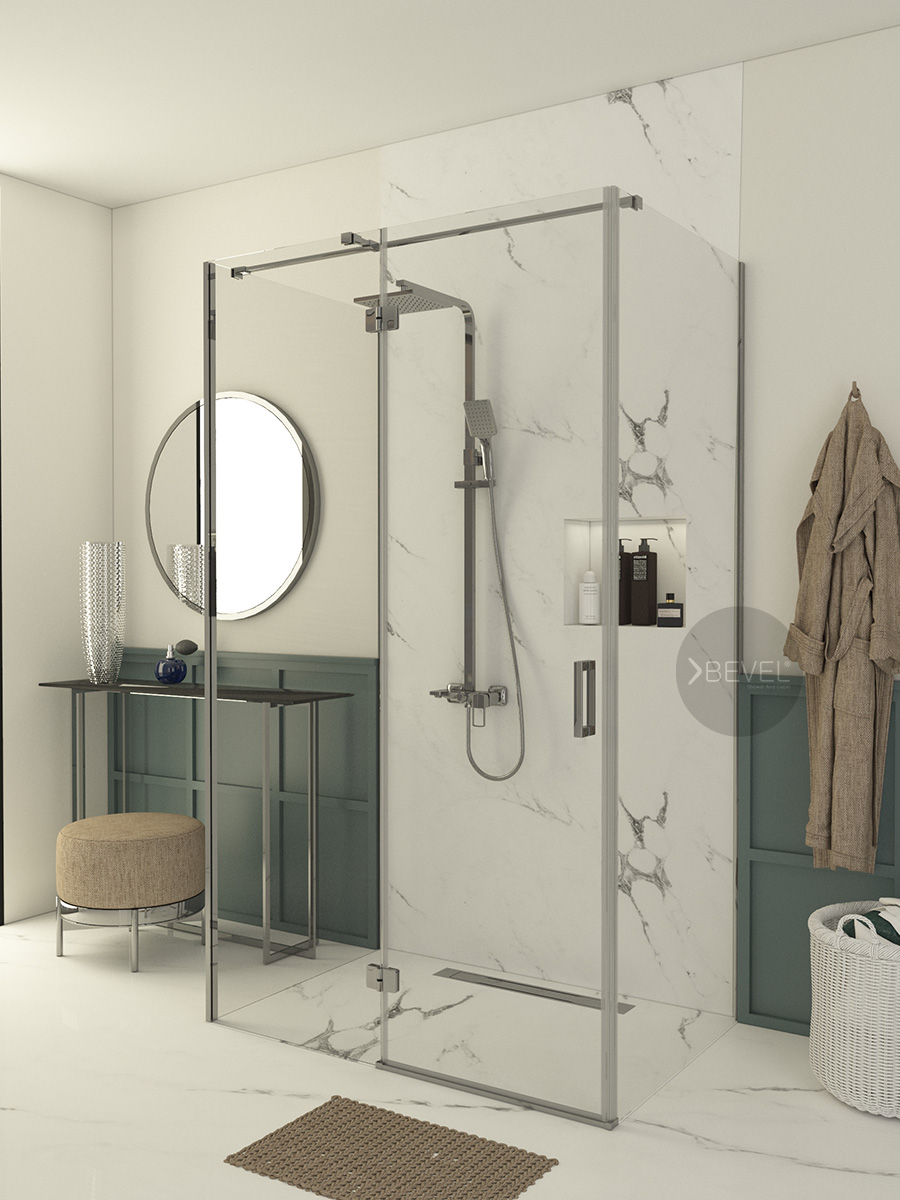 RAVAK, iki duvar arasına uygulanabilen bir sabit + dışa açılır kapı sistemi ile zor ve dar alanlarda dahi maksimum kullanım konforu sunar. Akıllı açılım geometrisi sayesinde alan kaybı yaşatmadan, duş alanını erişilebilir ve fonksiyonel hâle getirir. Bu yapı, özellikle kompakt banyolar ve planlaması zor mekânlar için pratik ve estetik bir çözüm sunar. Sisteme X2 modülünün eklenmesiyle, dikdörtgen formda daha geniş banyolarda ferah ve dengeli duş alanları elde edilir.