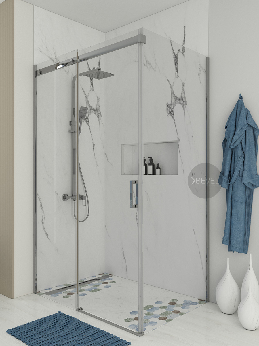 SFT-80012001Düz Duvar & Yan Panel Uygulama** Soft Serisi Dikdörtgen Form, düz duvar ve yan panel uygulamalarıyla farklı banyo planlarına esnek çözümler sunar. Mimari projelerde tercih edilen dikdörtgen yapı, alanı daha verimli kullanarak otel banyolarında düzenli ve fonksiyonel bir yerleşim sağlar. Sessiz ve yumuşak çalışan sürgü sistemi, yoğun kullanıma sahip otel ve konaklama projelerinde uzun ömürlü ve konforlu bir kullanım deneyimi sunar. 6 mm ve 8 mm temperli cam seçenekleri, güvenlik ve dayanımı üst seviyeye taşırken; yüksek cam kalitesi mekâna ferah ve şeffaf bir görünüm kazandırır. Krom alüminyum çerçeve, modern mimariyle uyumlu şık bir duruş sunarken, entegre havlu askısı ve bornoz askısı detayları kullanım konforunu artırır. Bu fonksiyonel aksesuarlar, otel banyolarında düzeni desteklerken kullanıcı deneyimini üst seviyeye taşır. Soft Serisi Dikdörtgen Form; estetik, fonksiyon ve kaliteyi bir arada sunan, küçük ve orta ölçekli alanlar için ideal, mimar ve otel projelerine özel tasarlanmış kayar duşakabin çözümüdür.