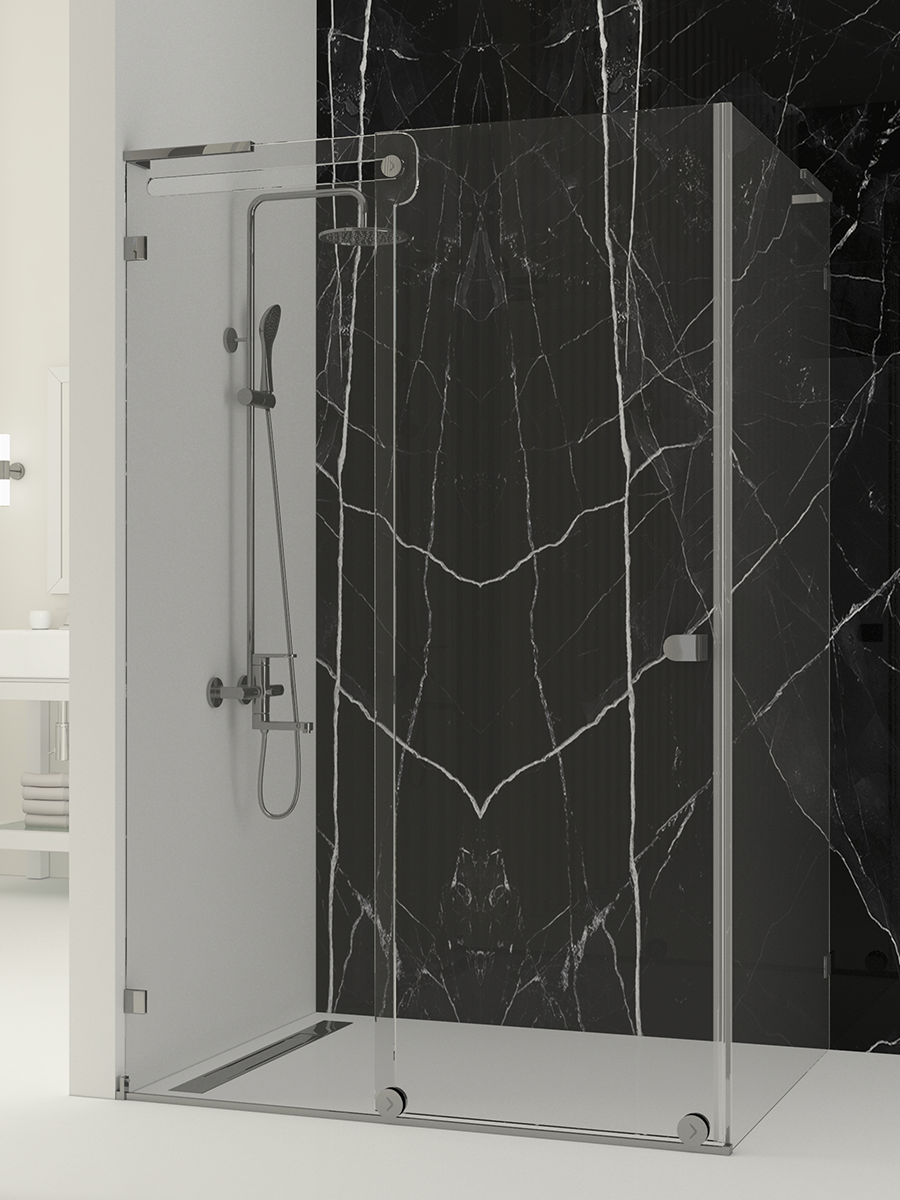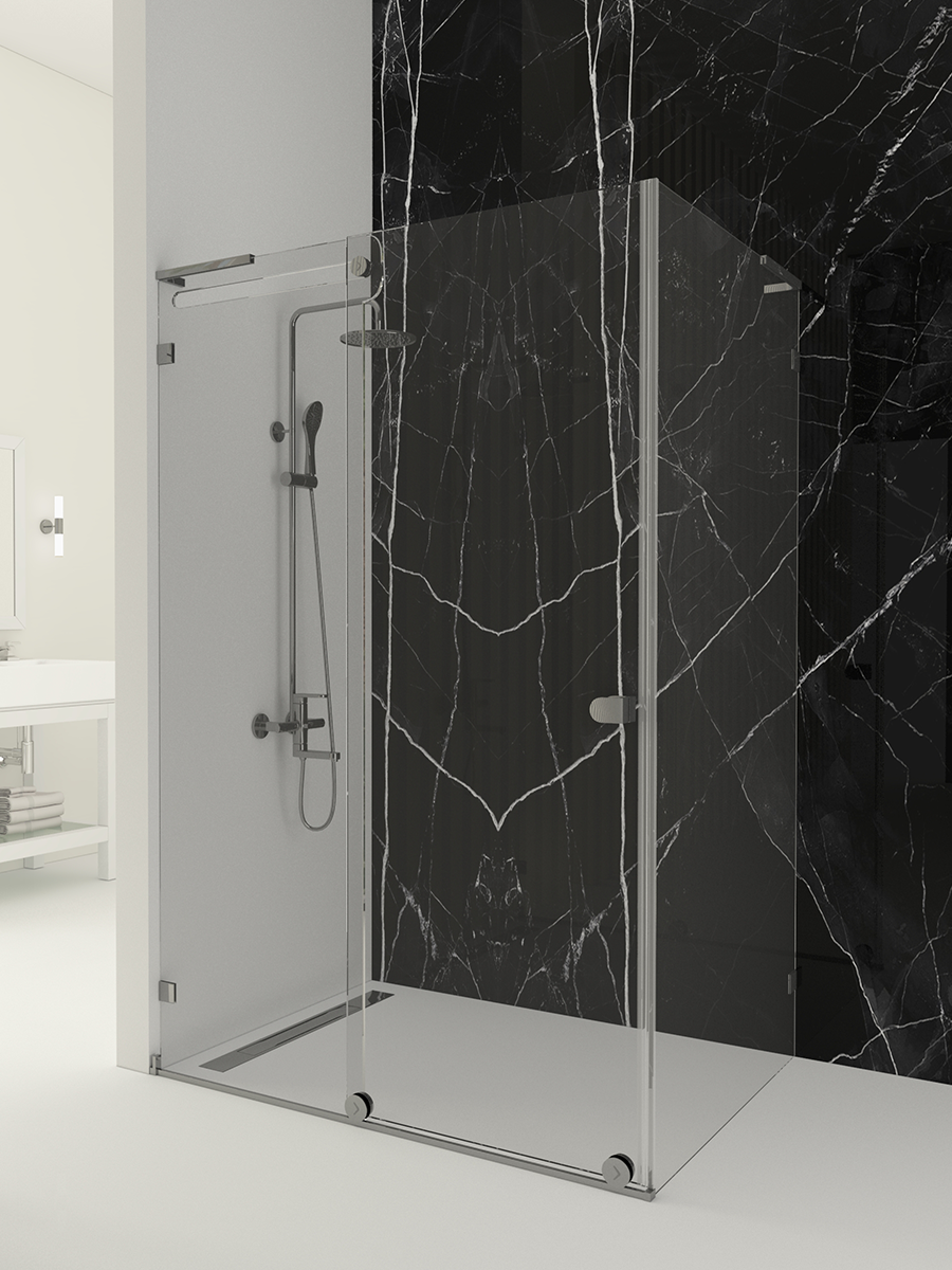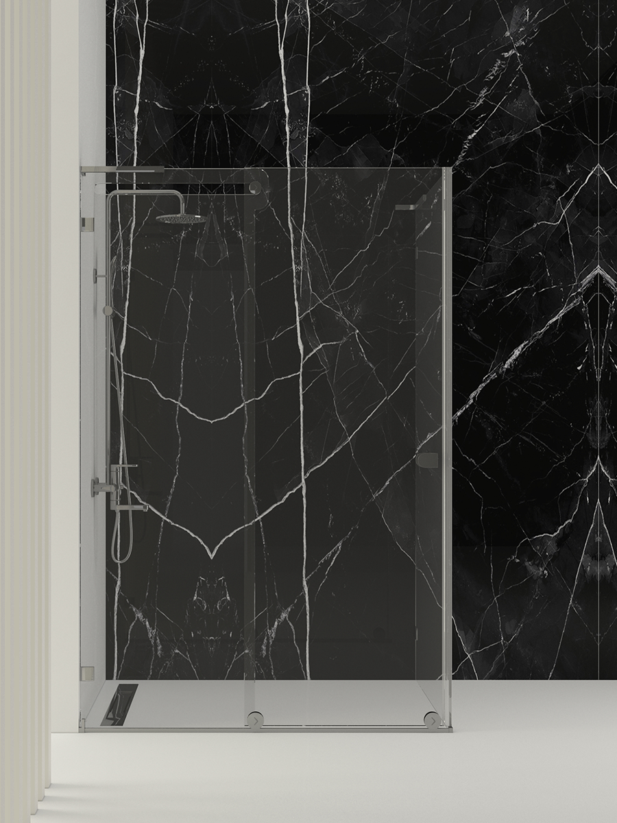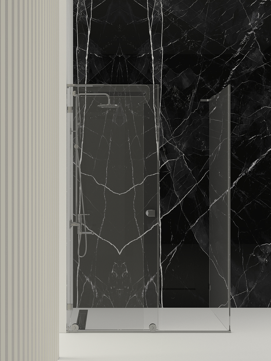 VALORE; yan panelli dikdörtgen formu ile geniş banyolar, otel süitleri, lüks villa ve rezidans projeleri için tasarlanmış, şeffaflığın mimari bir ifadeye dönüştüğü özel bir duşakabin çözümüdür.