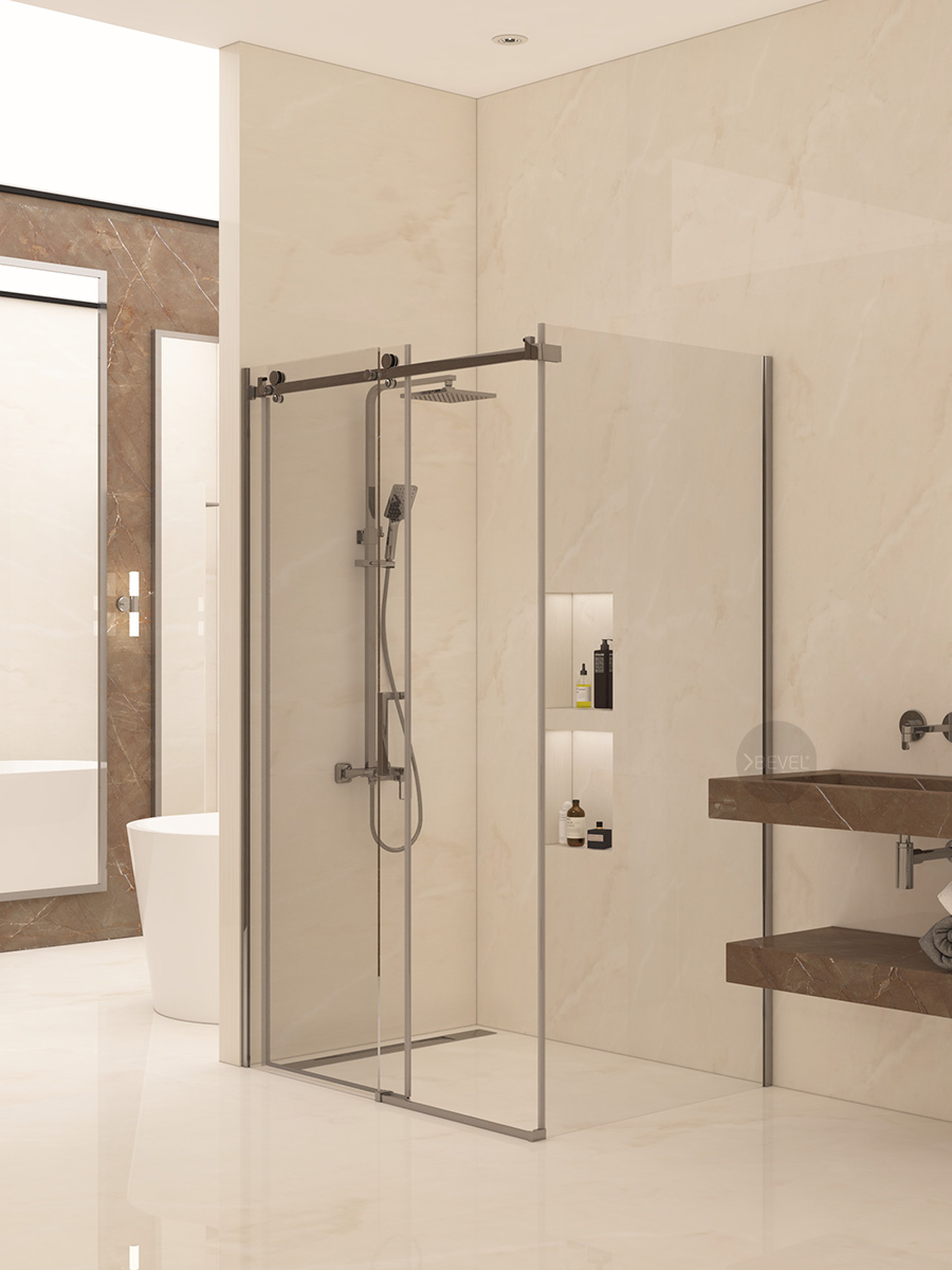 VERNUM, ultra lüks banyolar için özel çözümler üreten, sessiz ve yüksek konfor sunan bir duşakabin sistemidir. Dikdörtgen formu, geniş banyolarda güçlü ve dengeli bir mimari duruş sergilerken, iki sabit + bir kayar panel yapısı ile ferah ve konforlu kullanım alanları oluşturur.
