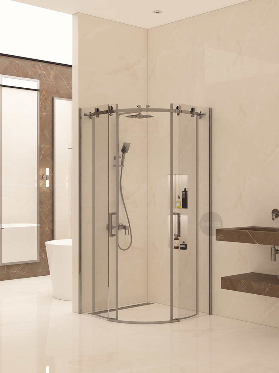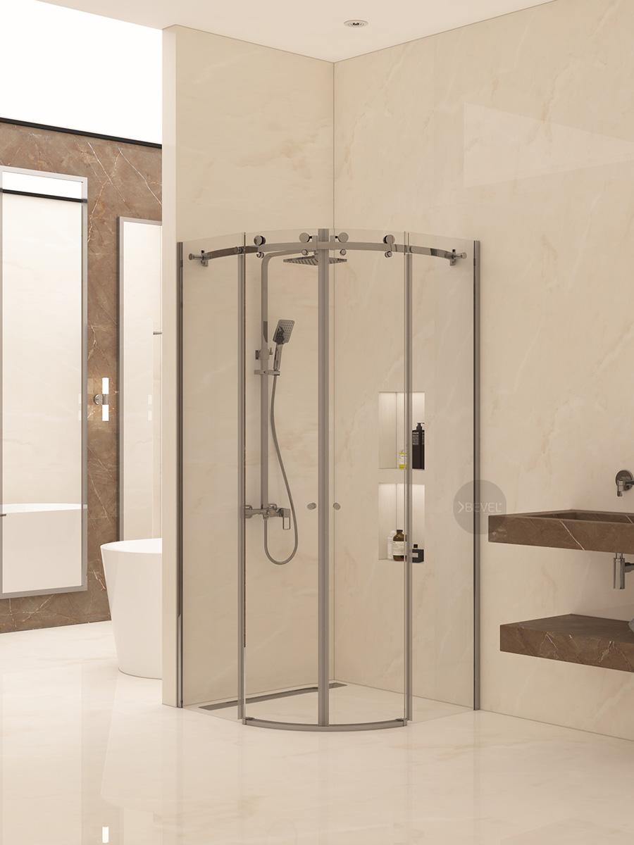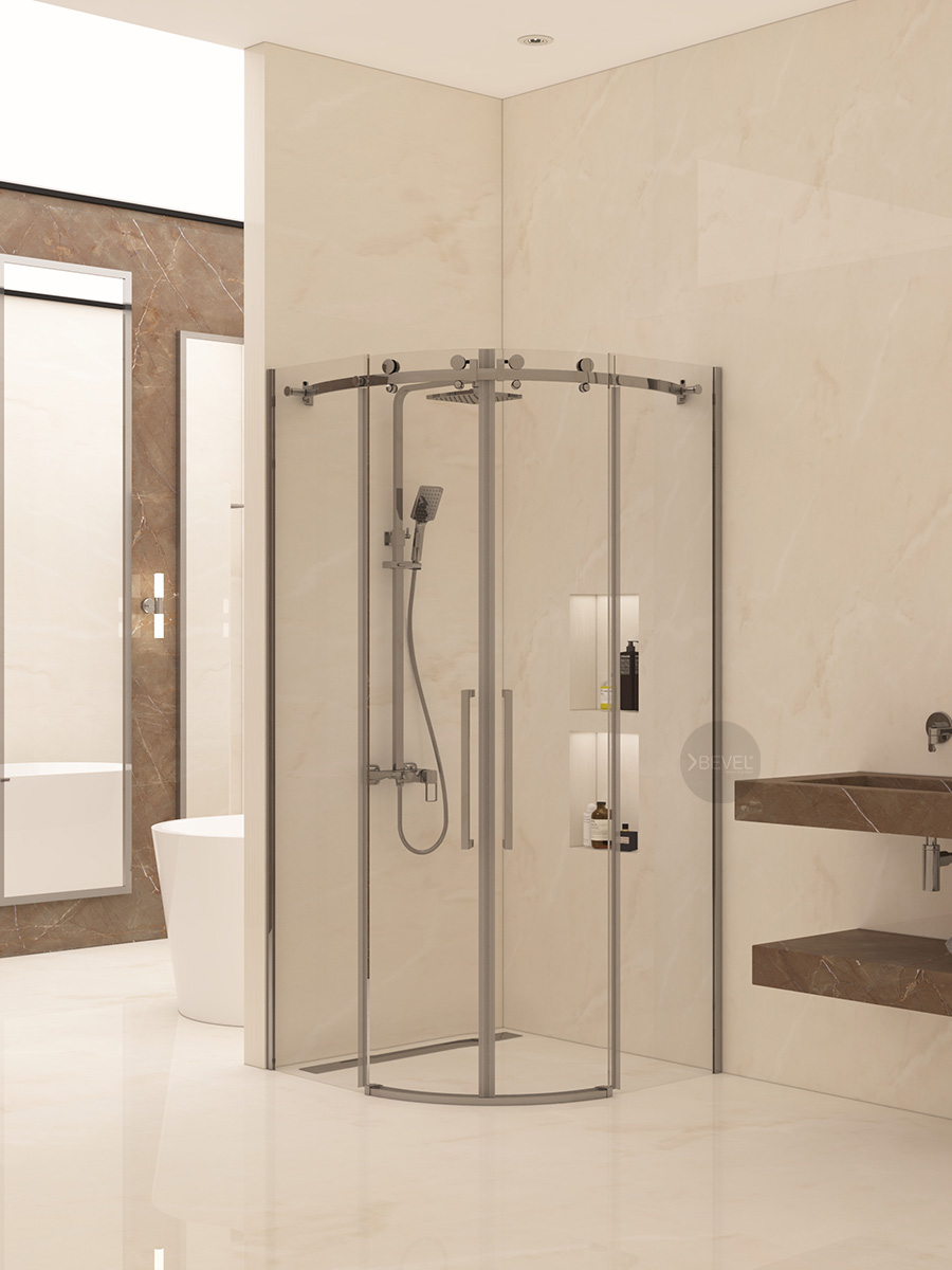 Ürün; 304 paslanmaz çelik bileşenlerden oluşan yapısı, 8 mm temperli sabit camları ve 6 mm oval kayar kapıları ile hem sağlamlığı hem de estetiği bir arada sunar. Üst bölümde yer alan paslanmaz çelik aksesuar sistemi, kapıların yumuşak ve sessiz bir şekilde hareket etmesini sağlar.